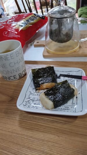 今日は、一日家にいたので、さほどお腹も空かず、お昼はお餅2個( *´艸`)