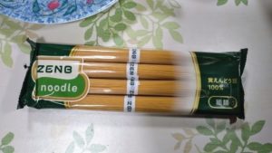 パスタは豆のパスタを使っています。これは、近所のスーパーで買えました。