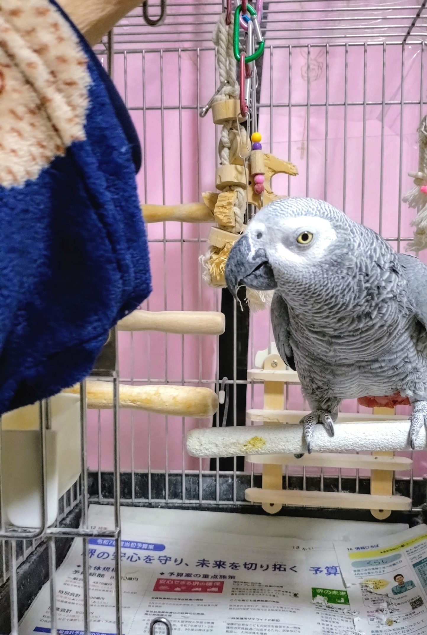 朝、早く起きたので、肌寒かったので、お風呂上りのもこもこガウンを着て、鳥部屋に行くと、