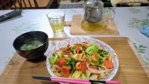 昨日は、簡単に焼きうどんにしました。