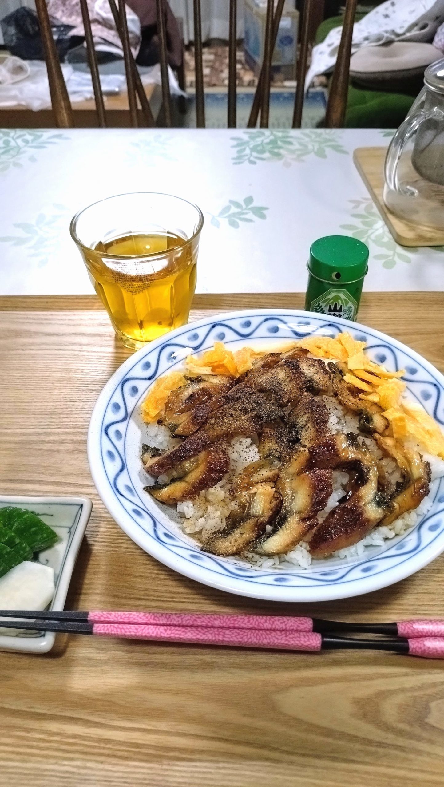 少ない鰻の切り身なので、丼でなくお皿に盛りました。