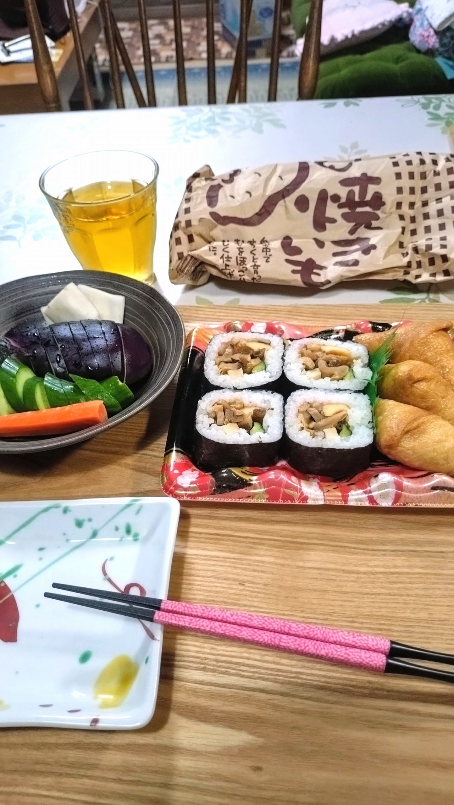 巻きずしとお稲荷さんのセットで手抜きにしました。