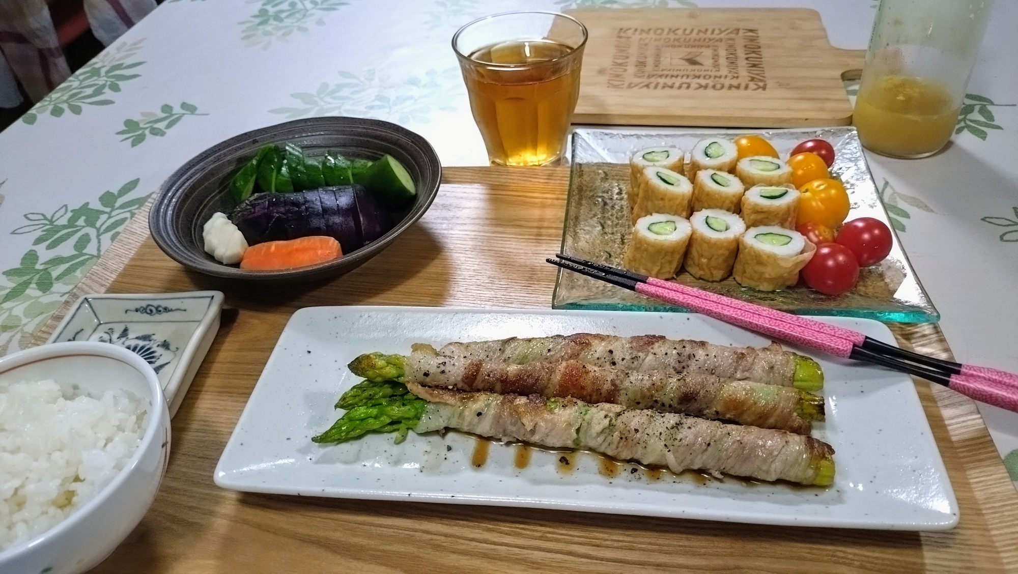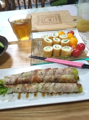 晩ごはん、暑すぎて、食欲が落ちる時は、目先を変えることに・・・マキマキにしました。