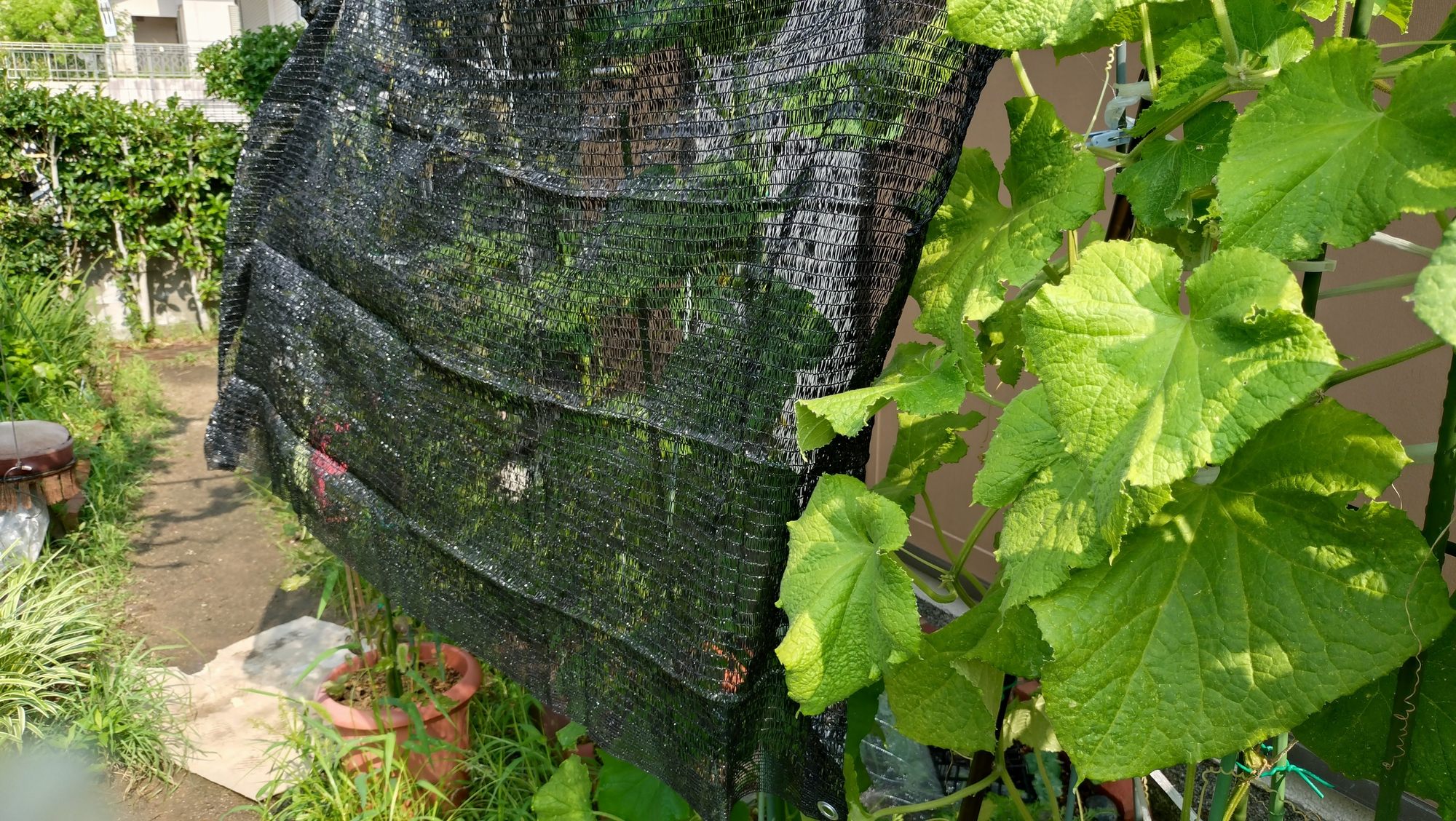今日は朝から、日除け対策。野菜です^^