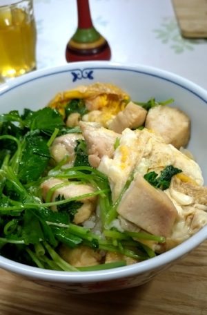 好物の三つ葉をゴッソリ入れた親子丼に。