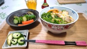 昨日は、前の日にウナギで楽をしたので、味をしめて(笑)また丼に。
