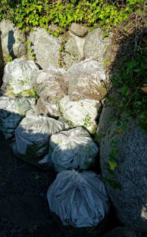ゴミ袋が30袋。・・・植木屋さんの場合は、ゴミ収集車のようなトラックまでくるので、