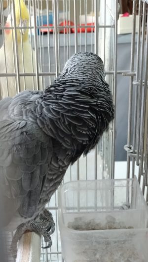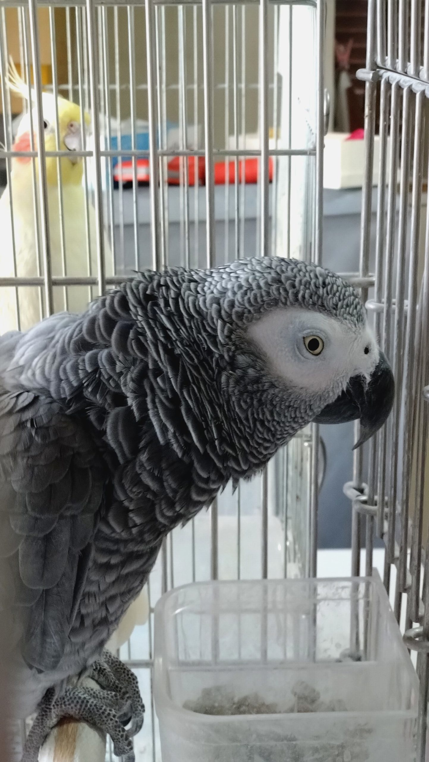 「お水換えてくるからね、ちょっと待っててね」と言うと、ヨウムは、