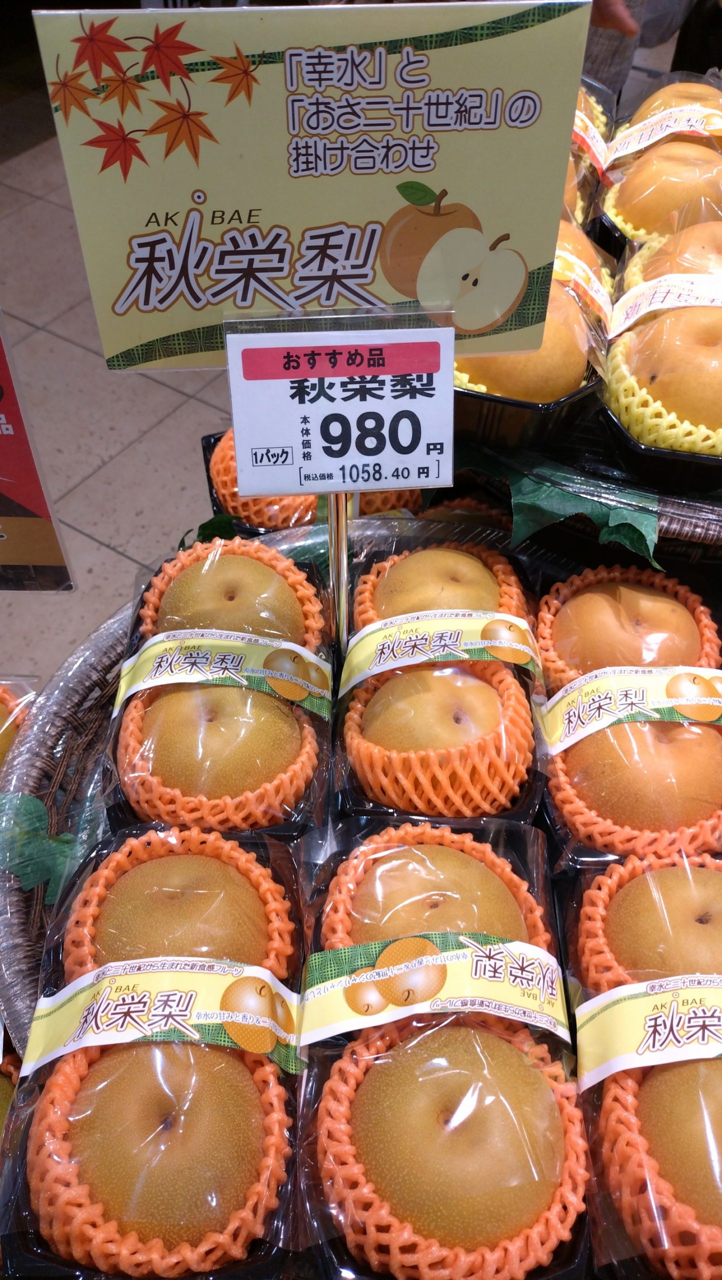 梨売り場で、朝、お裾分けにいただいた梨が並んでいました。