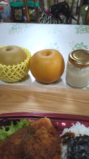 奥さんからの鳥取の梨と、甘酒を届けてくれました。