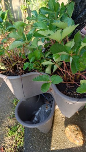 この春、イチゴを育ててみて、イチゴと言うのは、垂れ下がるから、こういう形状が便利なのだなと思いました。