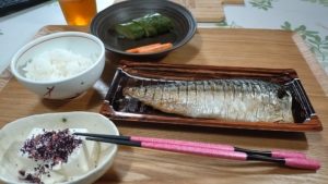 焼魚を買ってきました。半身を買ったので、反対向きになるのね、なんとなく、落ち着かないです(笑)