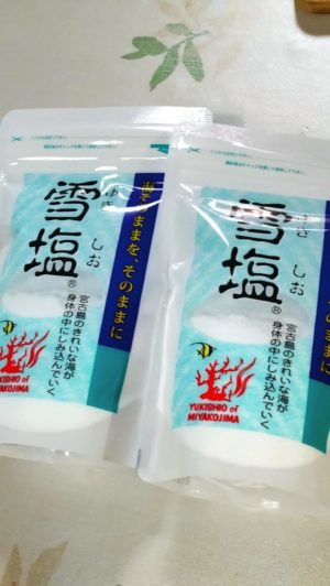雪塩、子どもが、欲しそうにしていたので、帰省時のお土産に入れておきました。