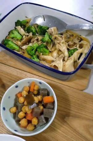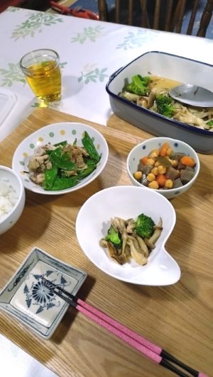 ひよこ豆の五目煮もあったので、ありあわせで夕食にしました。