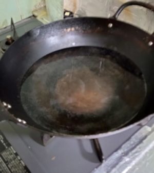30年使っている中華鍋にお湯を沸かし、