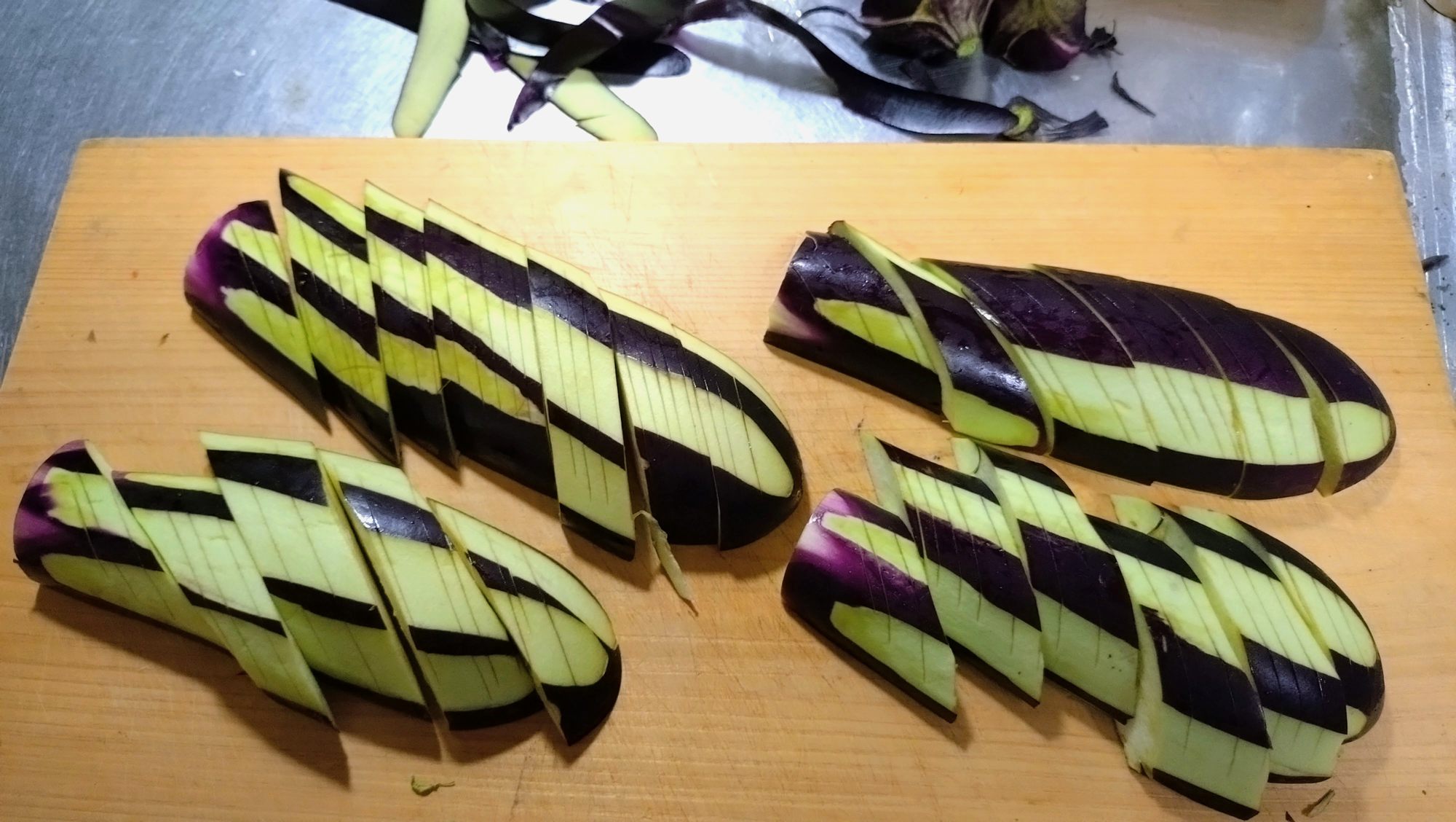 ナス2本切るのに、約1分。常に時間と競争しています(笑)