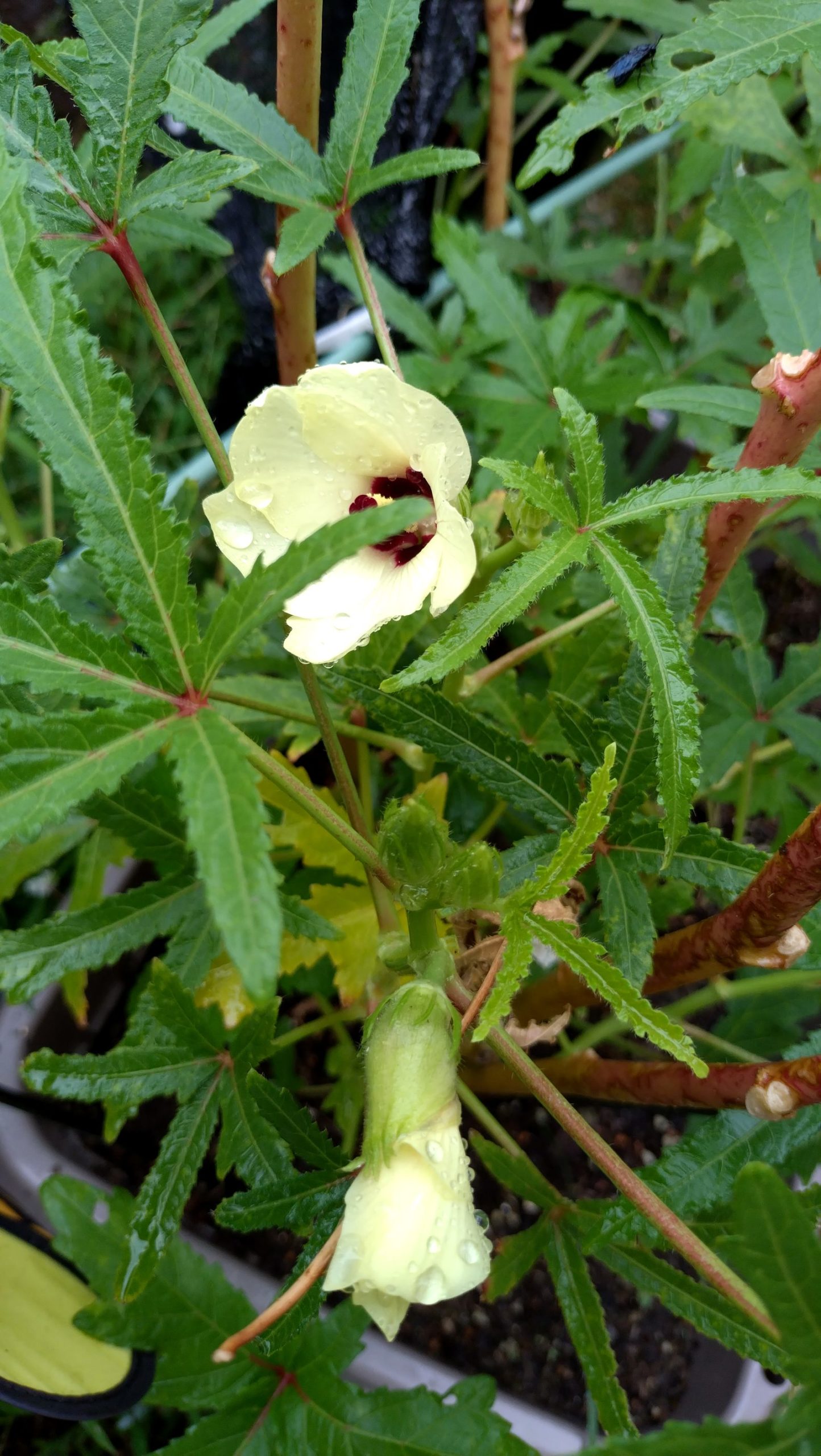 他に咲いているのはオクラの花だけです。
