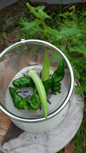 今日の収穫、まだオクラは採れそうです。