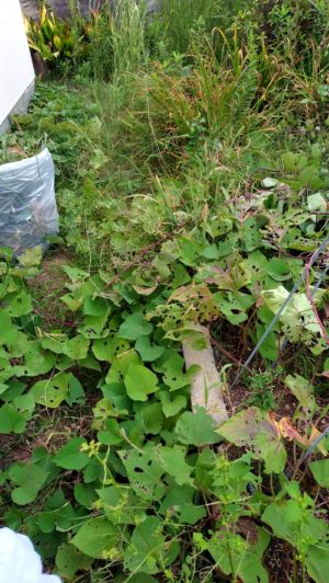 サツマイモの畑は、と言うか、もと畑、四方八方に、縦横無尽にツルが伸びて、