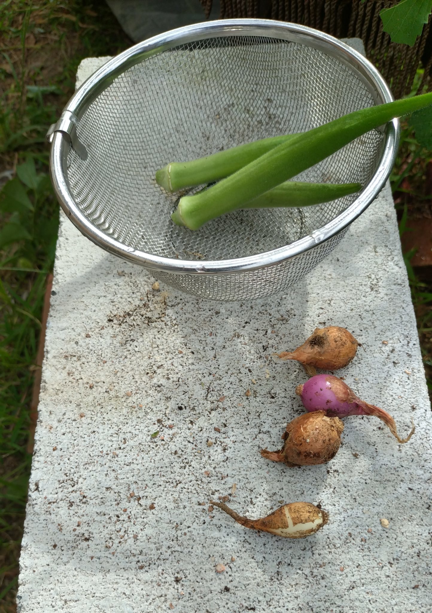 なんだこれ・・・(笑)玉葱です。オクラは立派だけどね💧野菜作りは、難しいものですね。