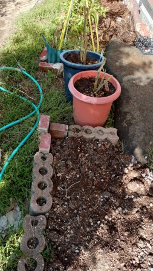 植木鉢に植えたトマトは、根が張りすぎ抜けないので、助っ人の訪問まで、待つことに( *´艸`)