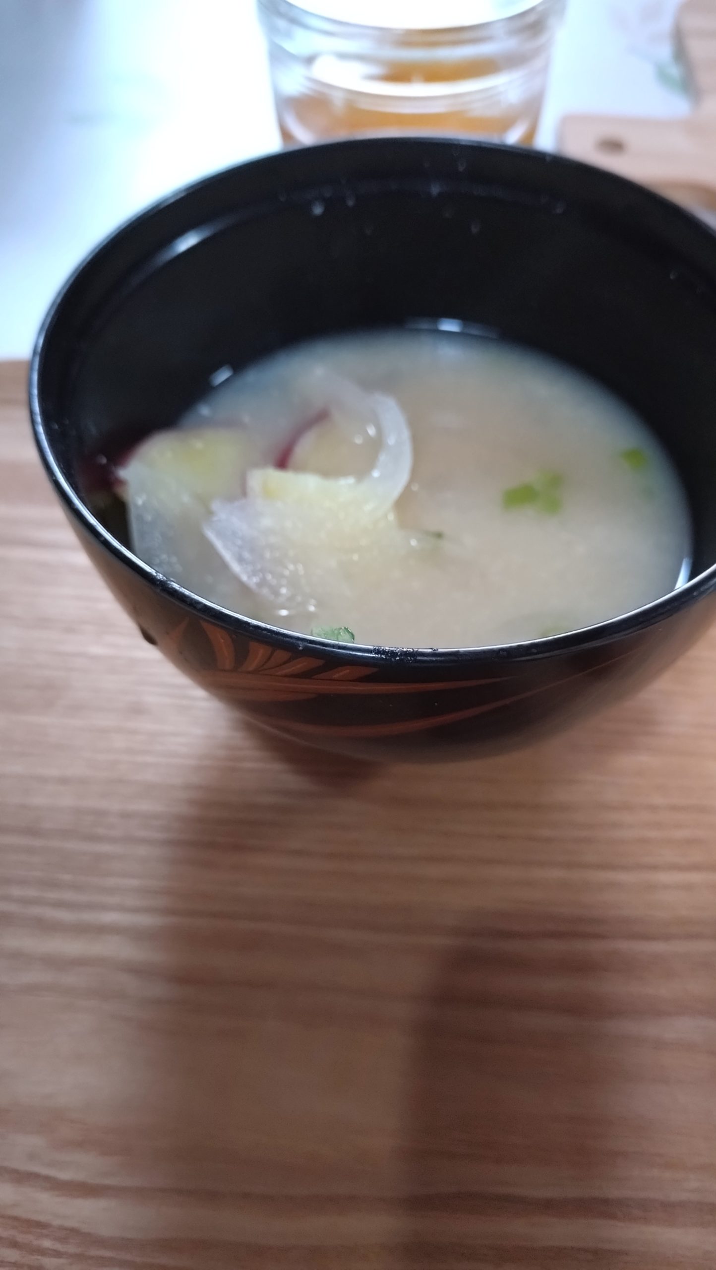 母がよく作っていた、玉葱とサツマイモ、豆腐の味噌汁