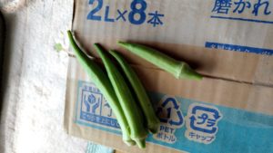 今日の収穫、まだオクラは花が咲いていますが、他の野菜は、終了。