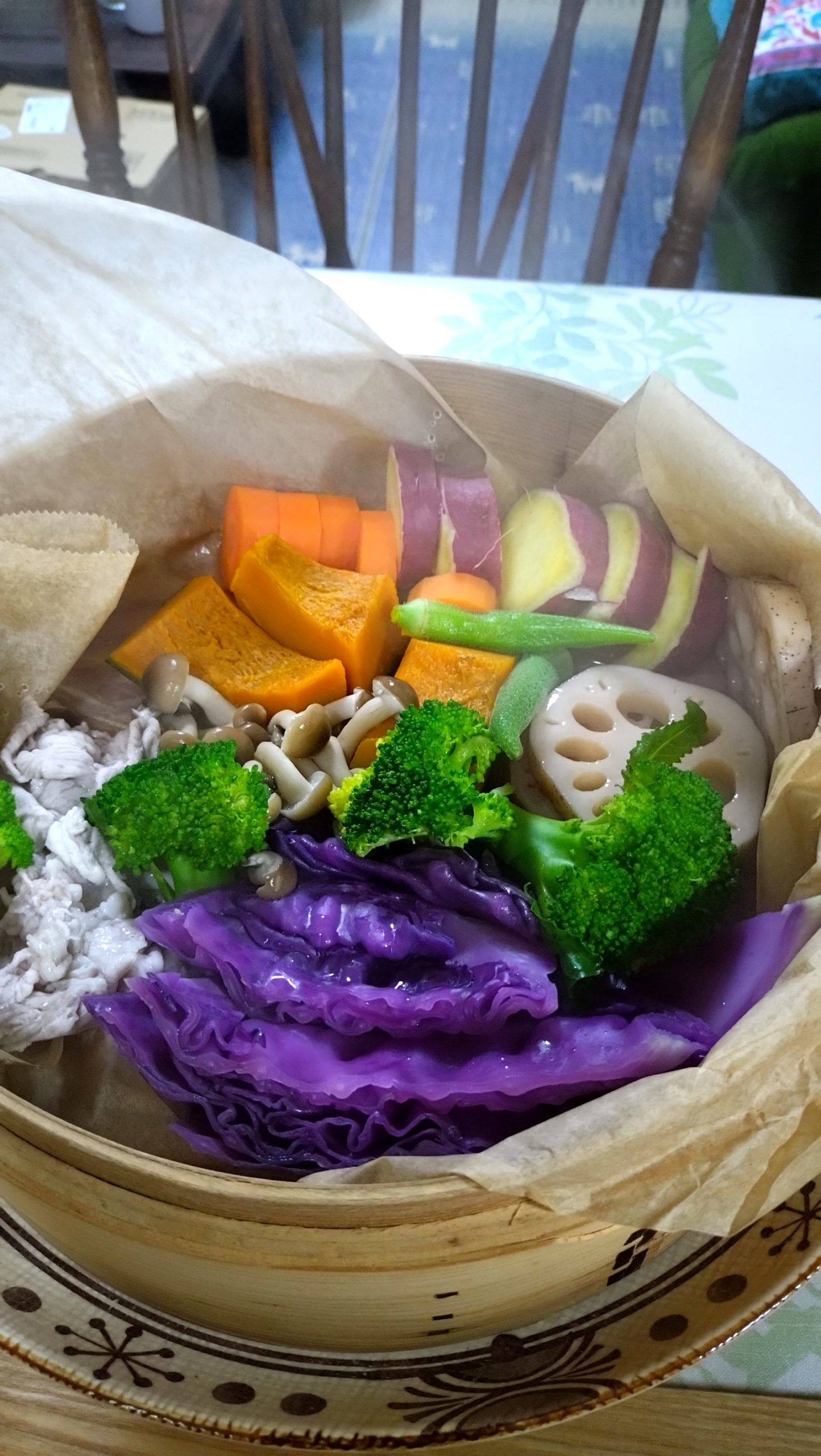 昨日は、切って並べるだけのセイロ蒸にしました。