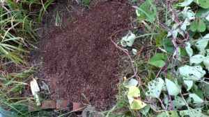 伸びたつるを多少移動させ、ジャガイモの場所を作りました。