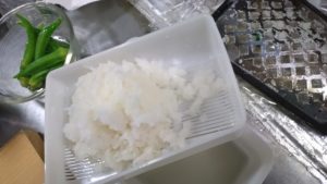 魚焼き器も、小さいので、ナナメにしてやっと入りました。