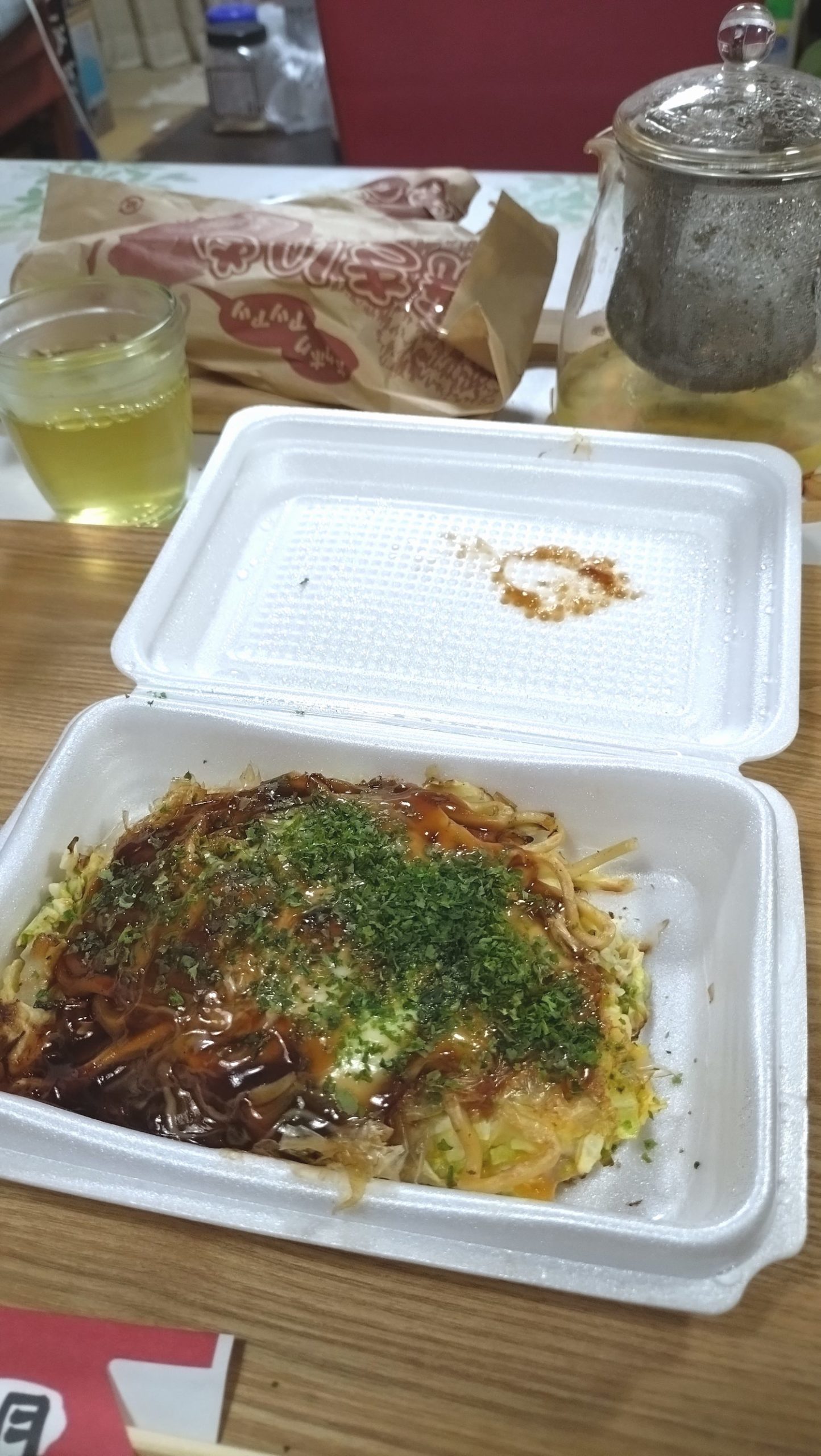 昨日は、ワンコイン、豚玉モダン焼きを買って帰りました。