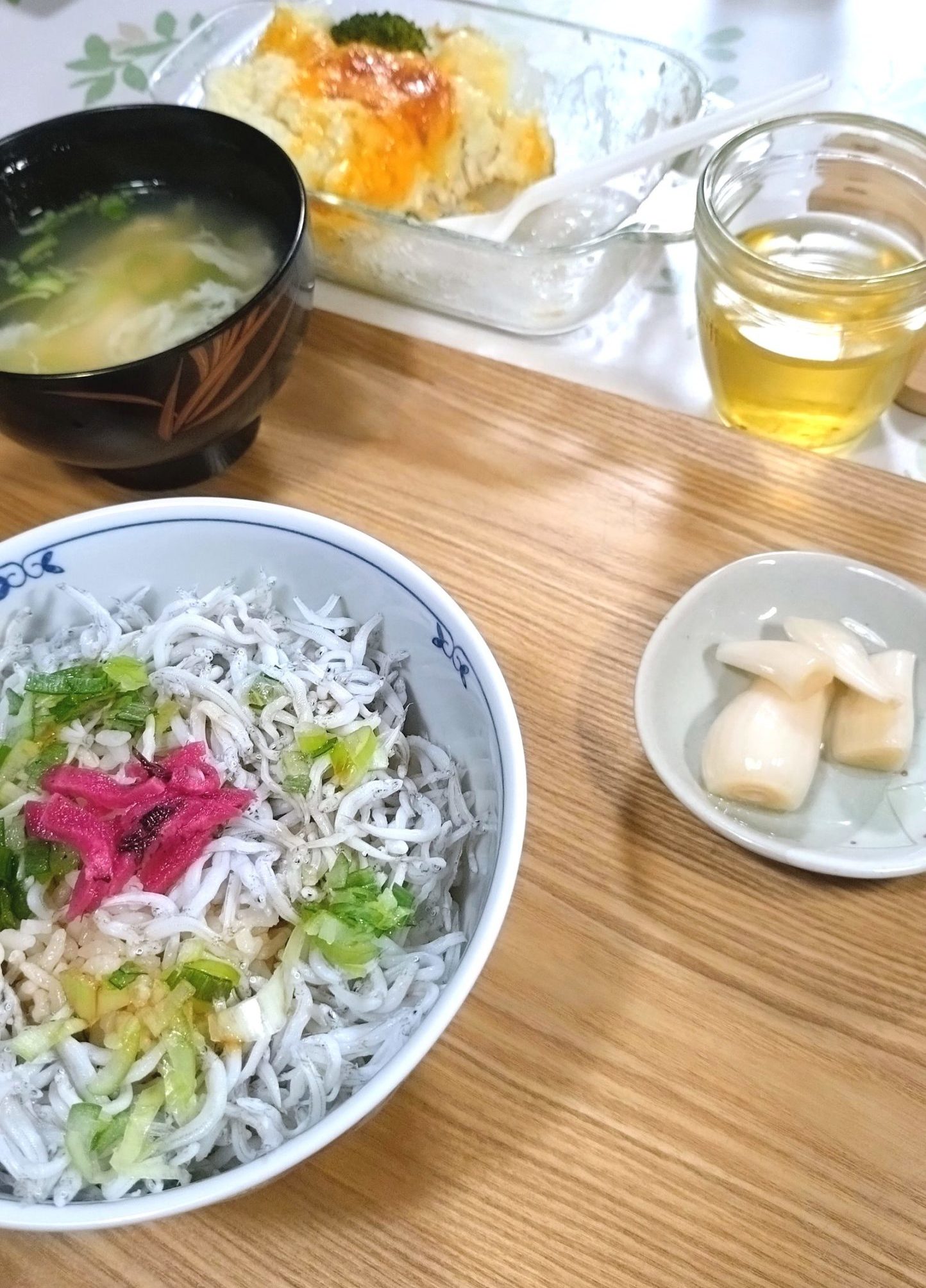 このシラスの周りに、大根おろしが乗っていました。そして、真ん中にはキムチ。