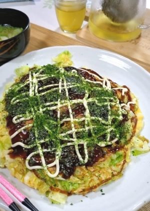 晩ごはんは、巨大お好み焼きにしました。