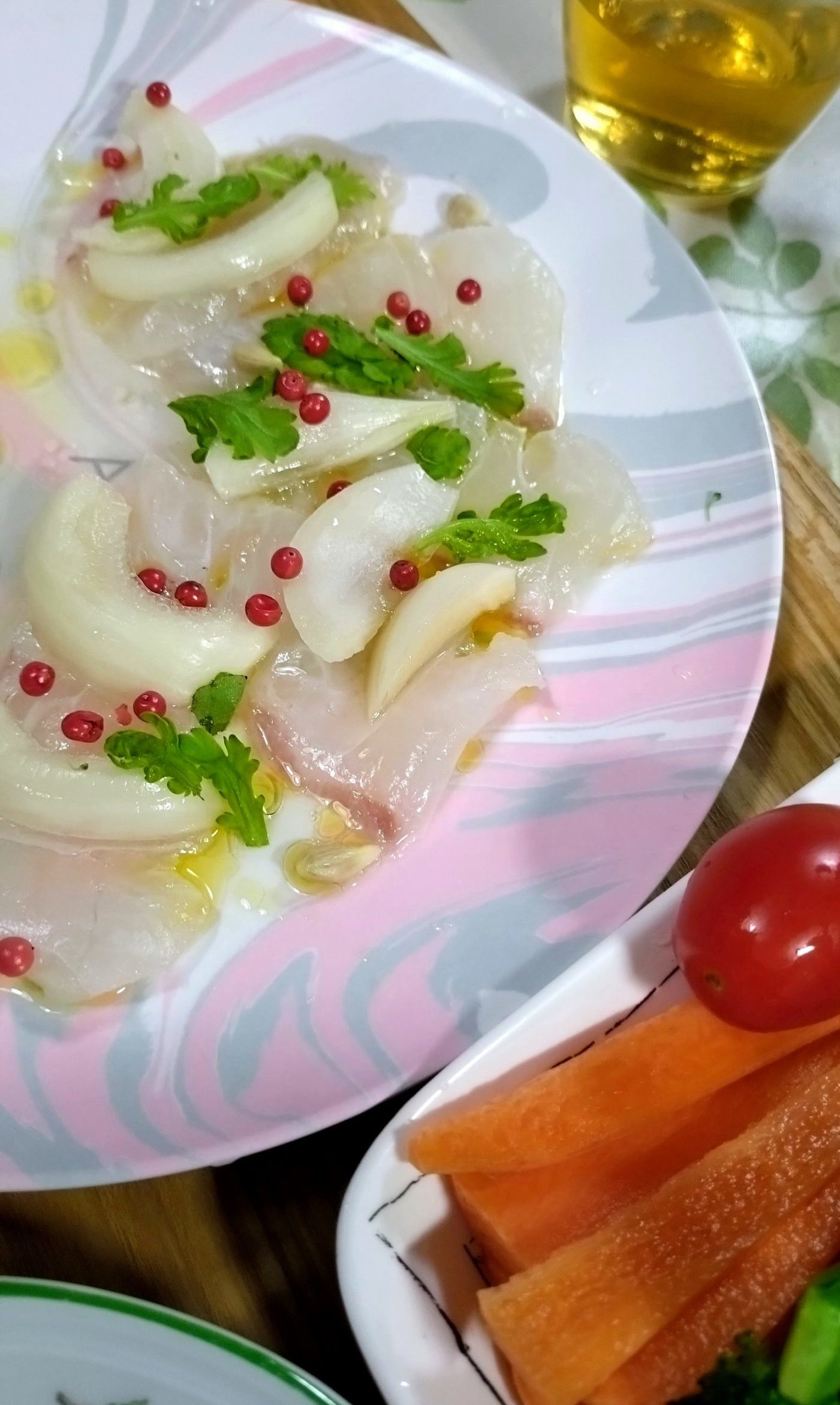 昨日は、鯛が食べたかったので、鯛のカルパッチョにしました。