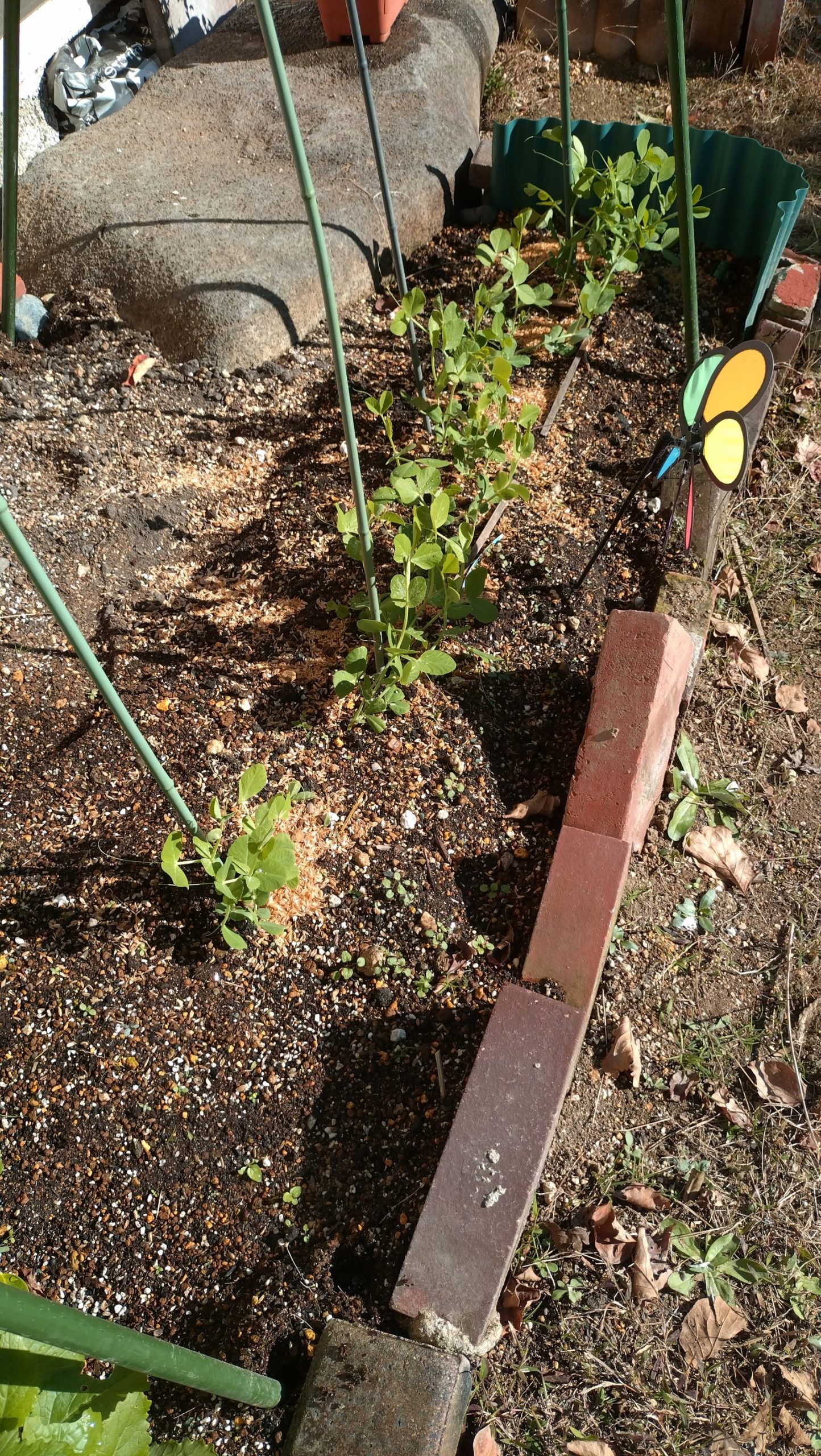 もう一か所、スーパーで売ってた「甘いえんどう」の種で植えたのとで、
