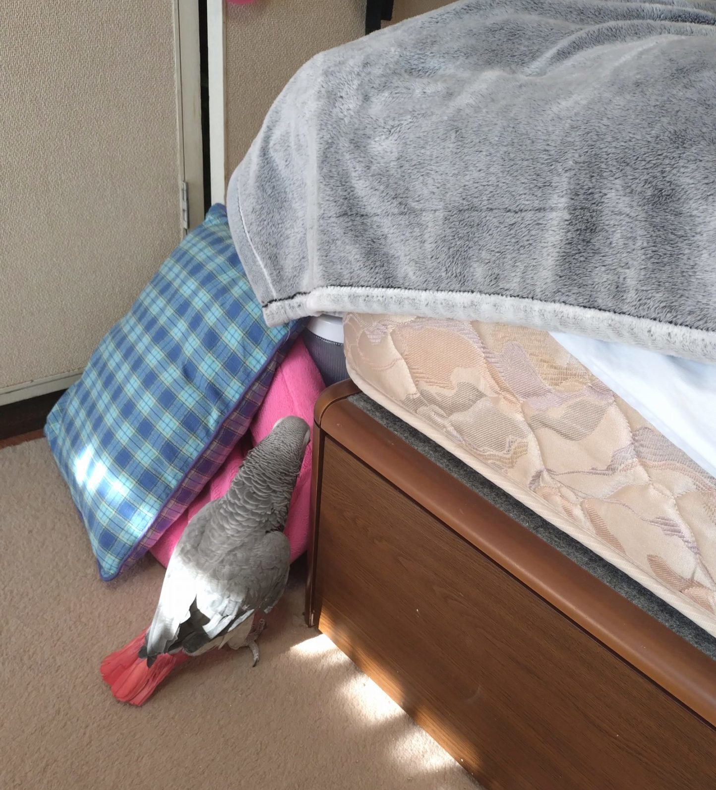 ベッドに着地したかったようですが、失敗した模様。