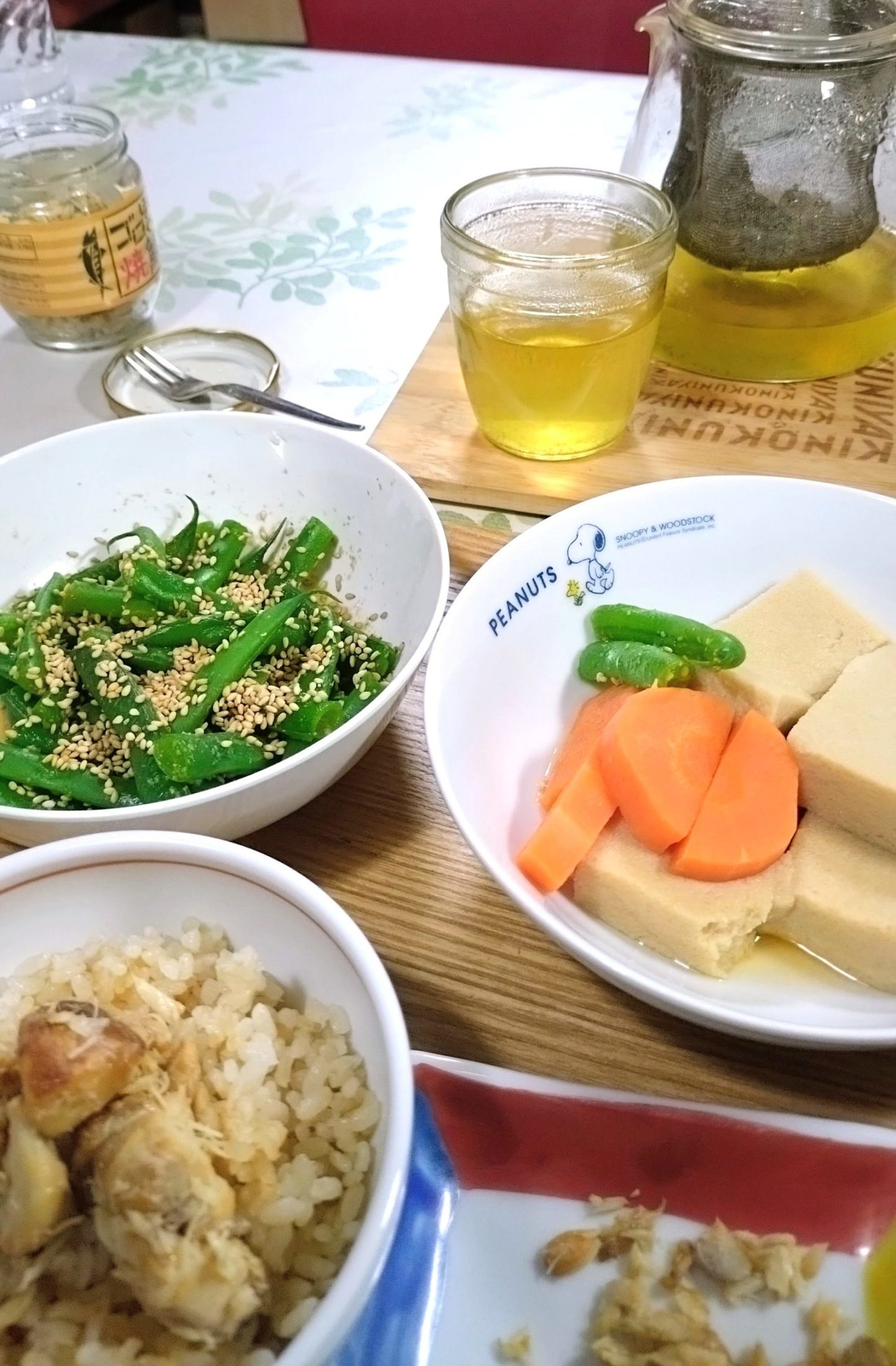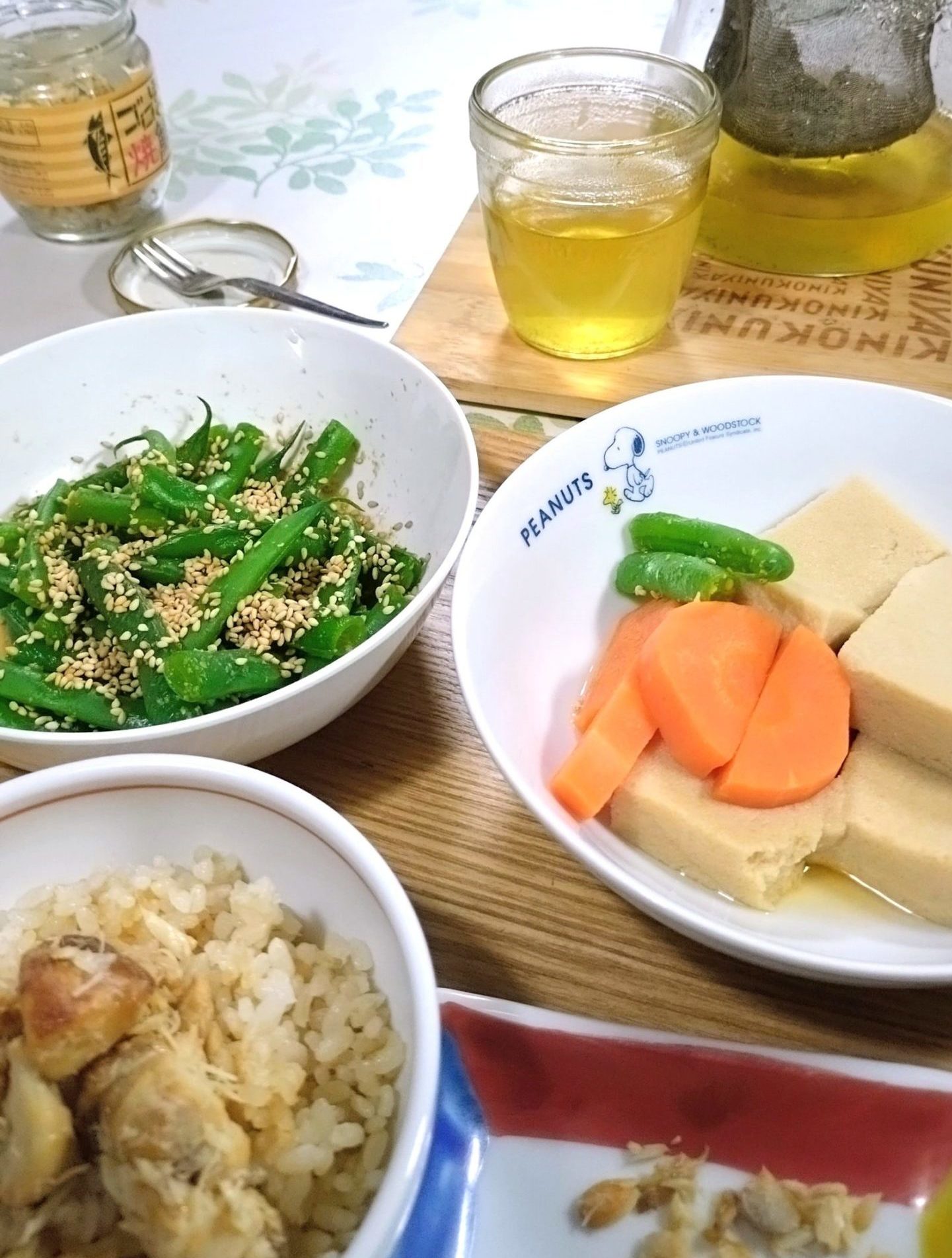 大好き高野豆腐といんげんの胡麻合え、それと