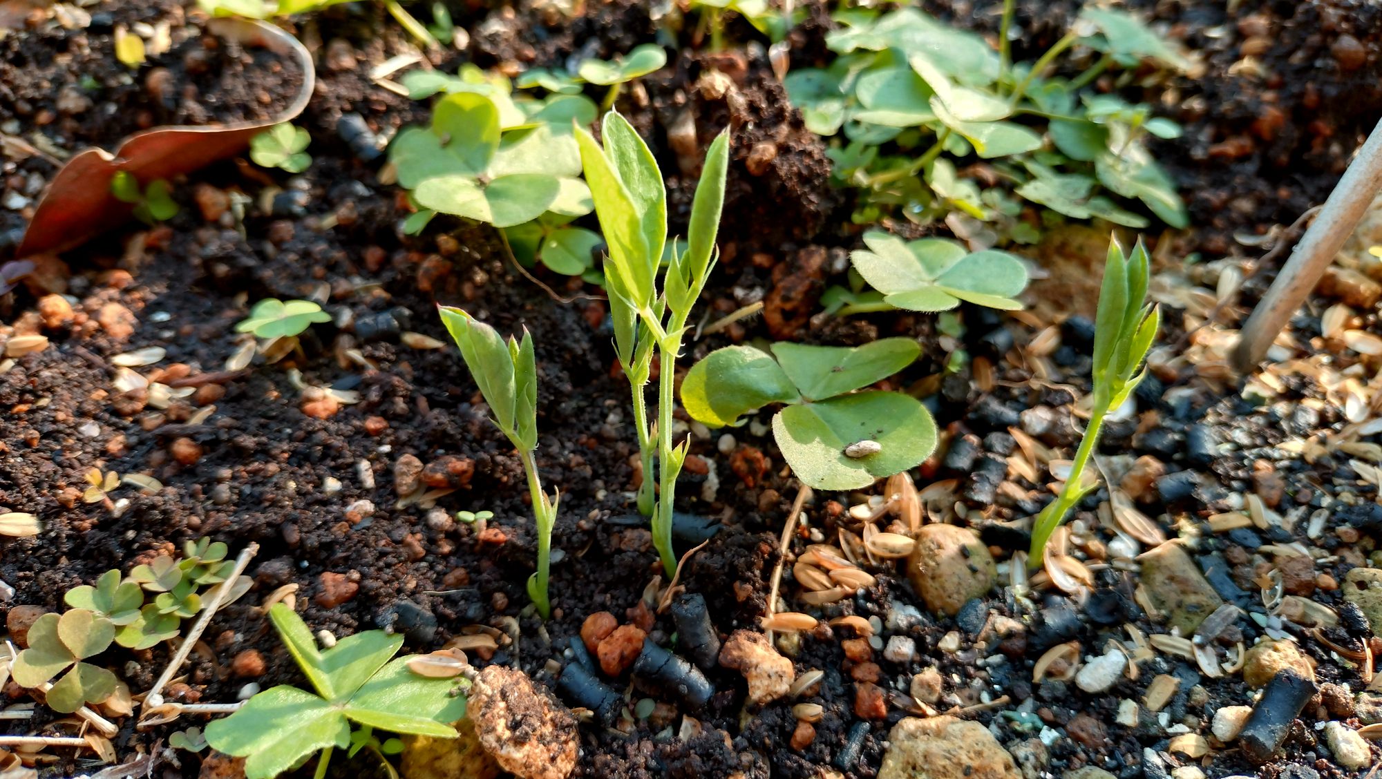 同じ豆のスイトピーの種を植えました。