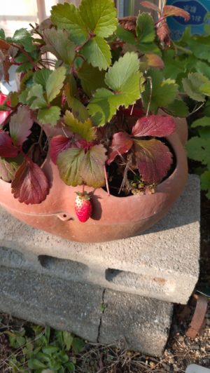 今日もイチゴ1個収穫、隔日ぐらいで食べています。