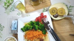 晩ごはんは、鳥胸肉の和風ステーキにしました。妙にクリスマスっぽくなりました。