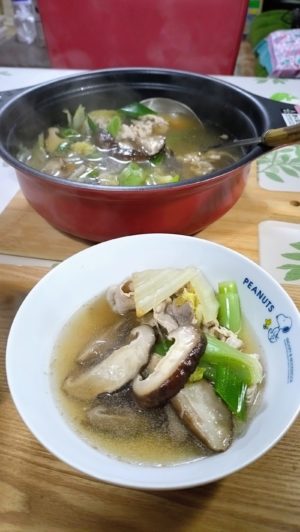 昨日は、立派なシイタケを買ったので、シイタケ鍋(笑)にしました。