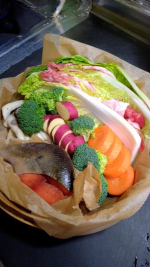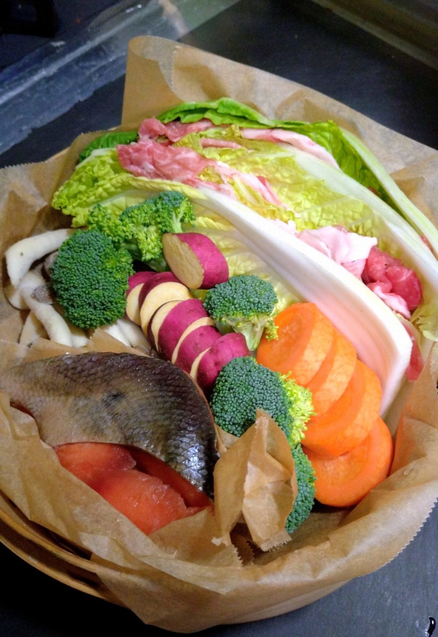 セイロにオープンペーパーを敷いて、具を並べるだけ。