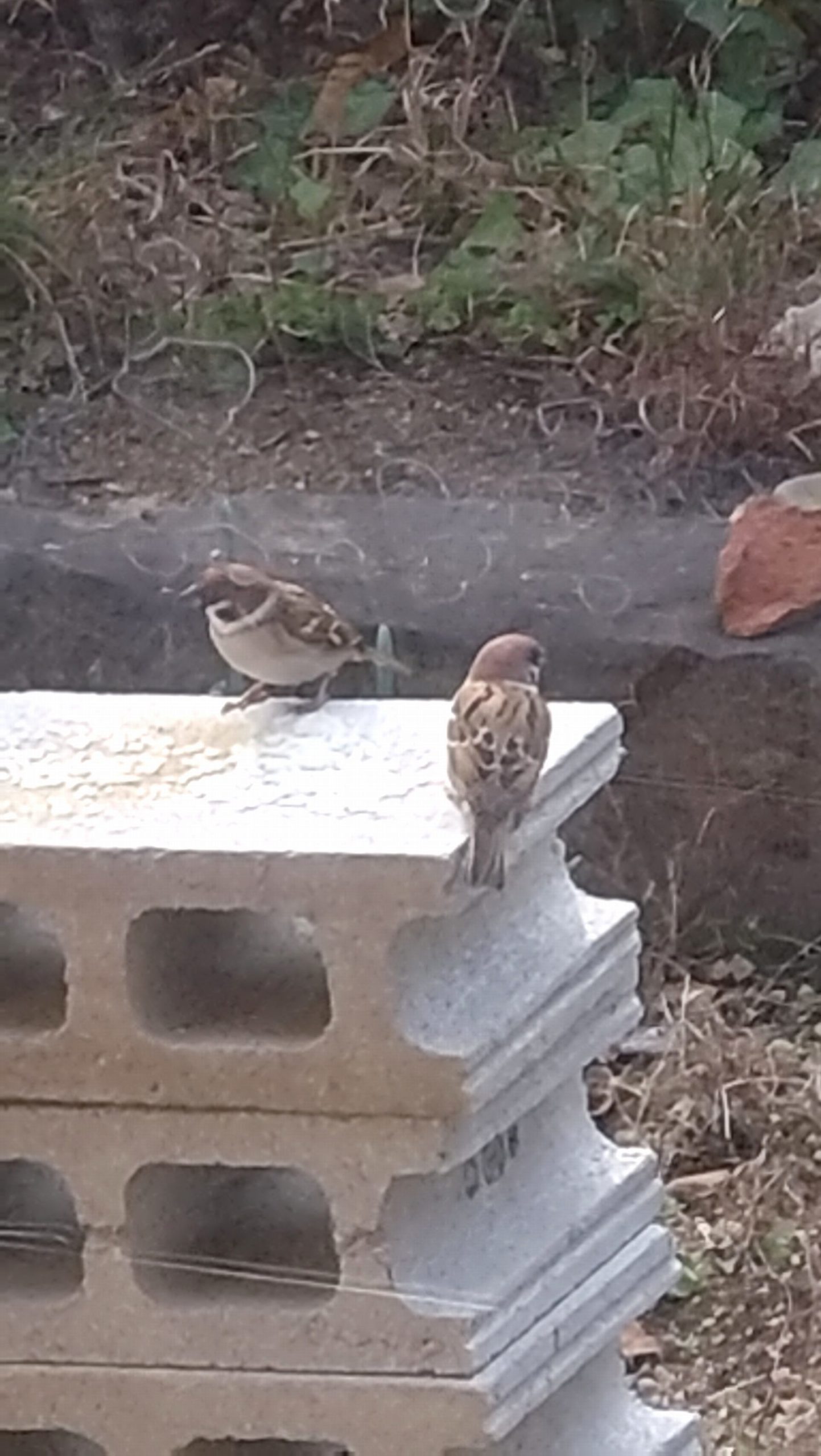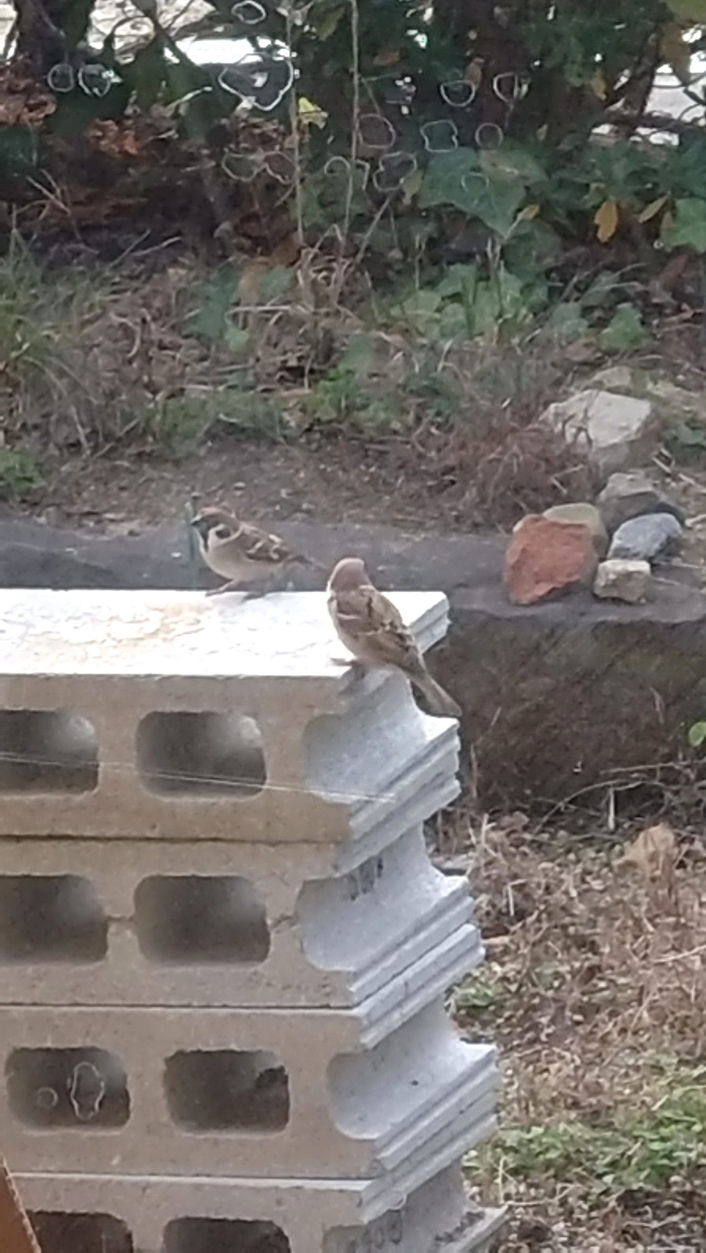 庭のスズメ。
