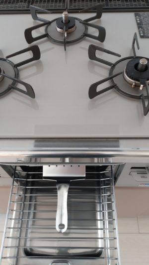 戸棚が上、下にたくさんあり、鍋類もしっかり格納できる。