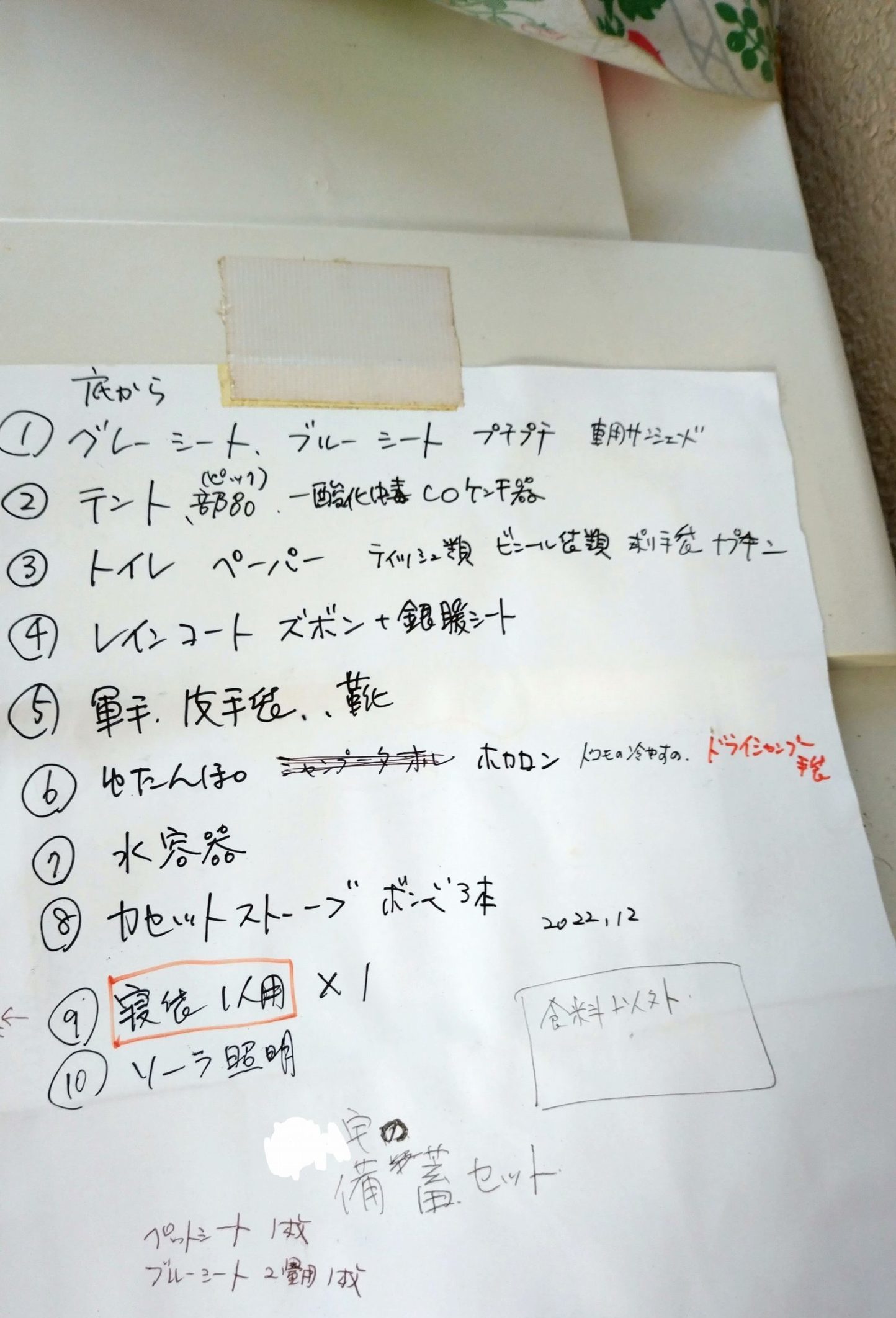 災害の度合いもあるけれど、とりあえず、数か所に分けて備蓄しています。