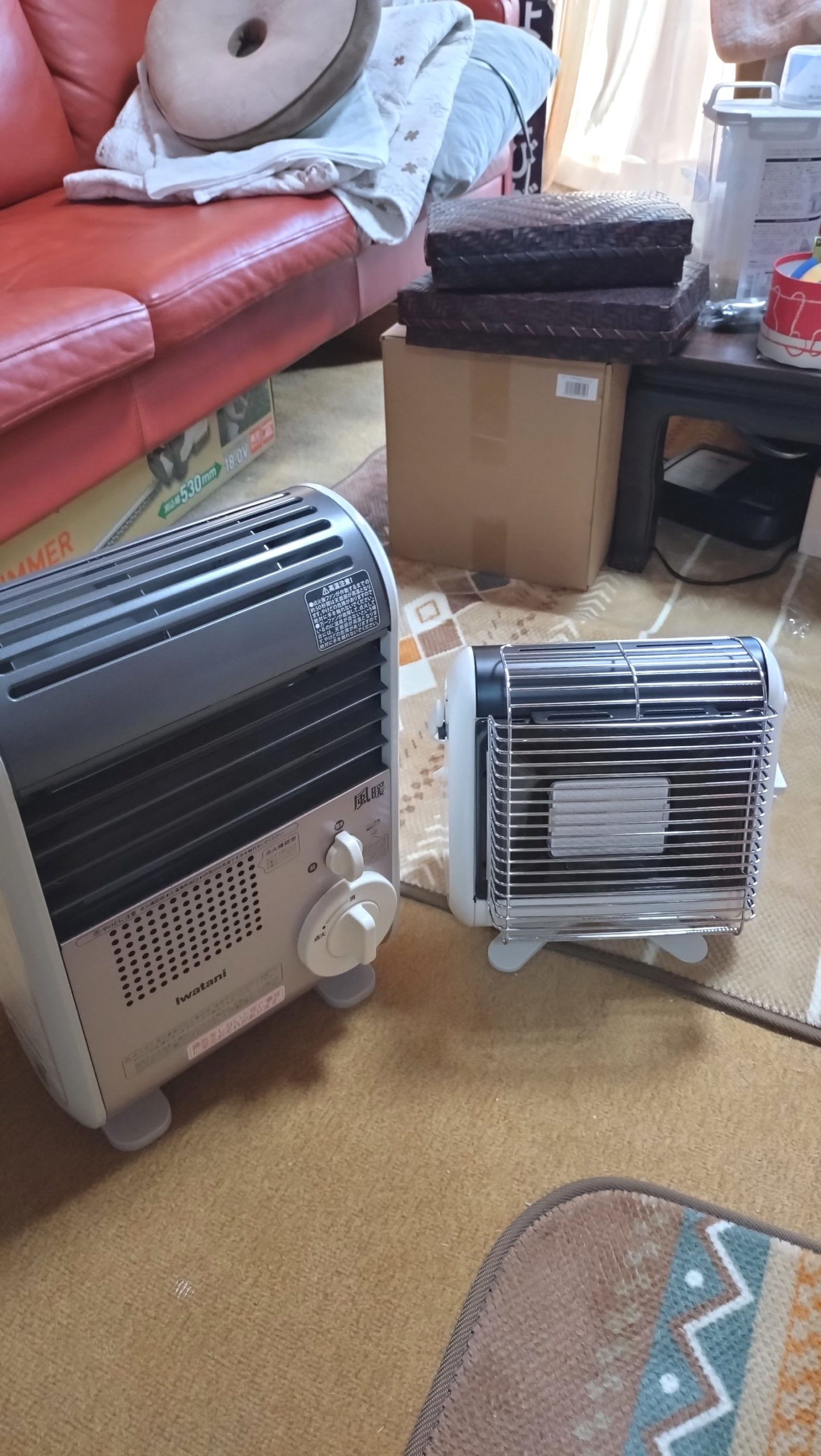 引っ越し荷物を減らす作戦で、数日前から、ガスヒーター以外に、カセットヒーターも使っています。