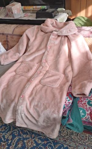 その上から、今度はピンクの毛布みたいなガウン、