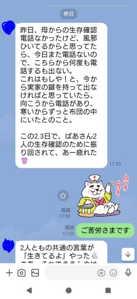 私の、「もしかしたら、死んでるかもしれない事件」以降も大変だったようで、どうもスミマセン💦