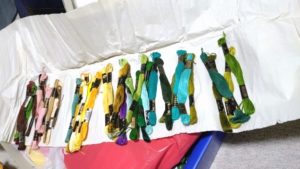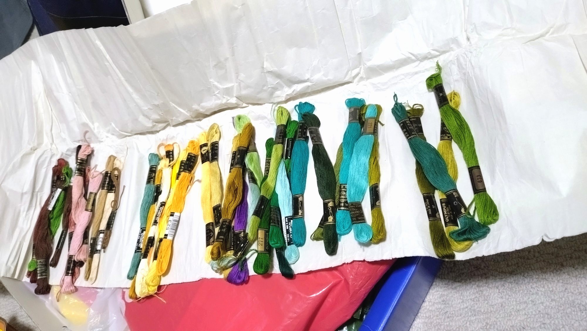 毛糸は全部捨てたけれど、刺繍糸はかさばらないので、(和紙に挟んで、クルクル巻いています)