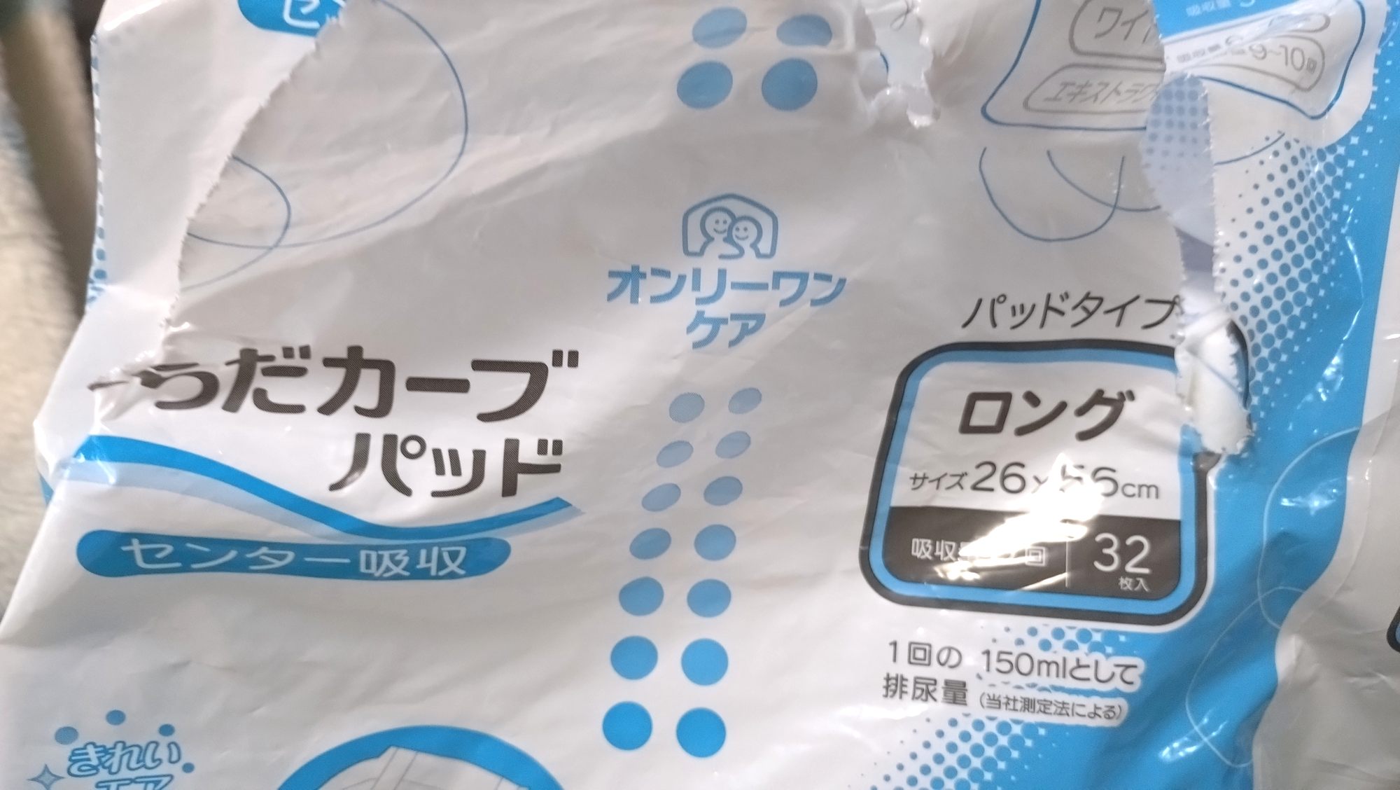 これも同じく、母の介護施設で使用されていたパッドですが、破れているので、見えにくいですが、